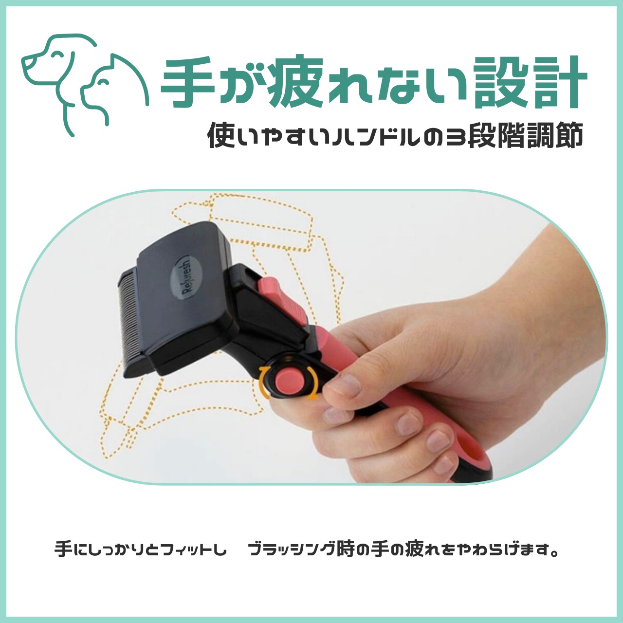 短・中毛どちらのペットちゃんにも適しており、トップコートからアンダーコートまで一切傷つけることがなく抜け毛をしっかりと除去します。